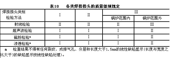 7.2.5各类焊缝的质量级别规定见表10。
