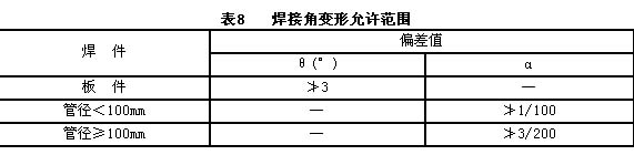7.1.2焊接角变形应符合表8规定。